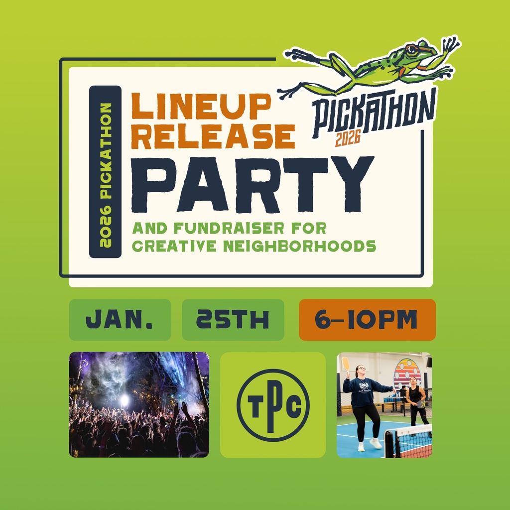 Come have a drink, play some pickleball, and help build the festival. Proceeds benefit Creative Neighborhoods.